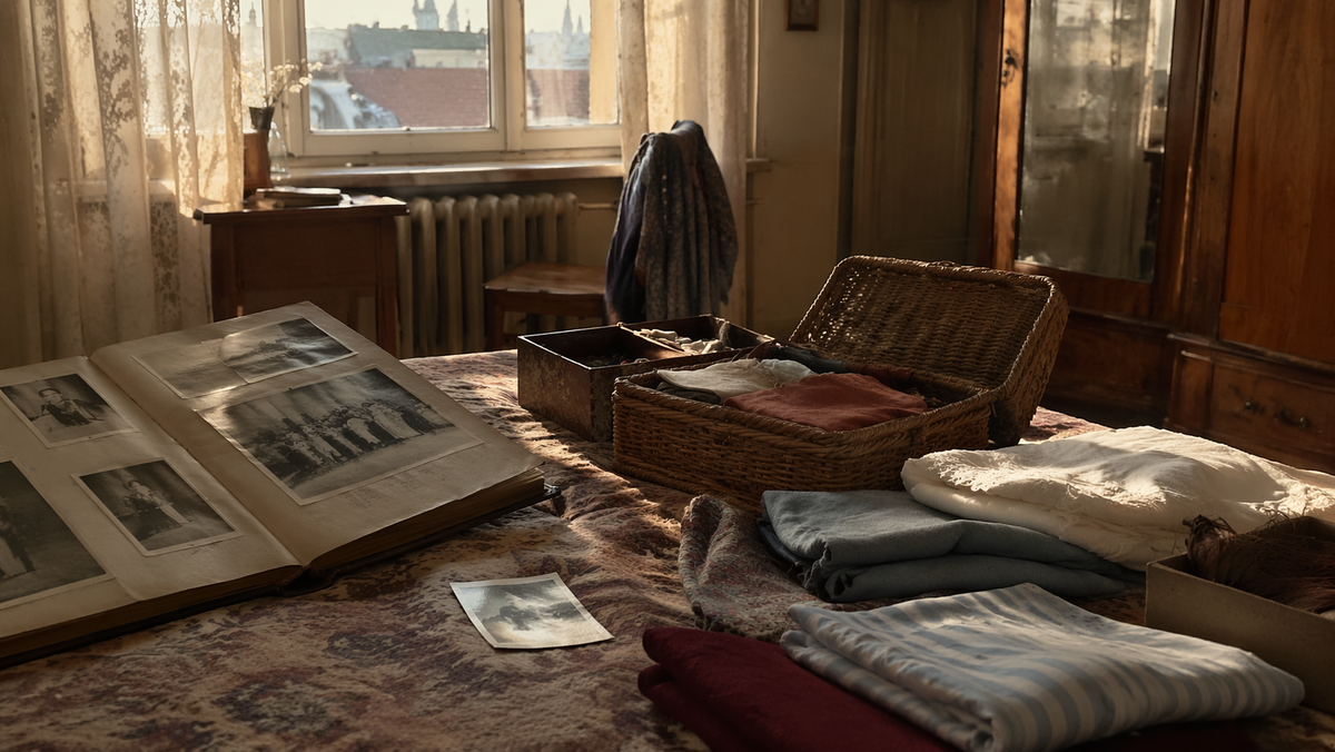 Она складывала вещи без спешки. Платья — на одну стопку. Тёплые кофты — на другую. Хорошее пальто в клетку отложила отдельно, для дочери соседки. На верхней полке шкафа стояли коробки из-под обуви. В одной — нитки, пуговицы и старые молнии. В другой — открытки, несколько ёлочных игрушек без коробочек и завёрнутый в газету фотоальбом.