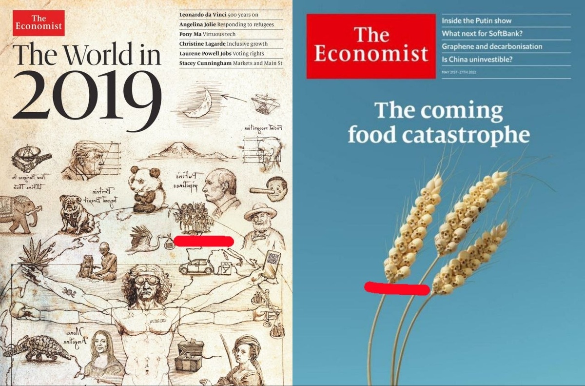 Когда стало понятно, что с организацией войны у них всё получилось, The Economist опубликовал на обложке колоски, где вместо зёрен – человеческие черепа, намекая на скорый приход «Третьего всадника».