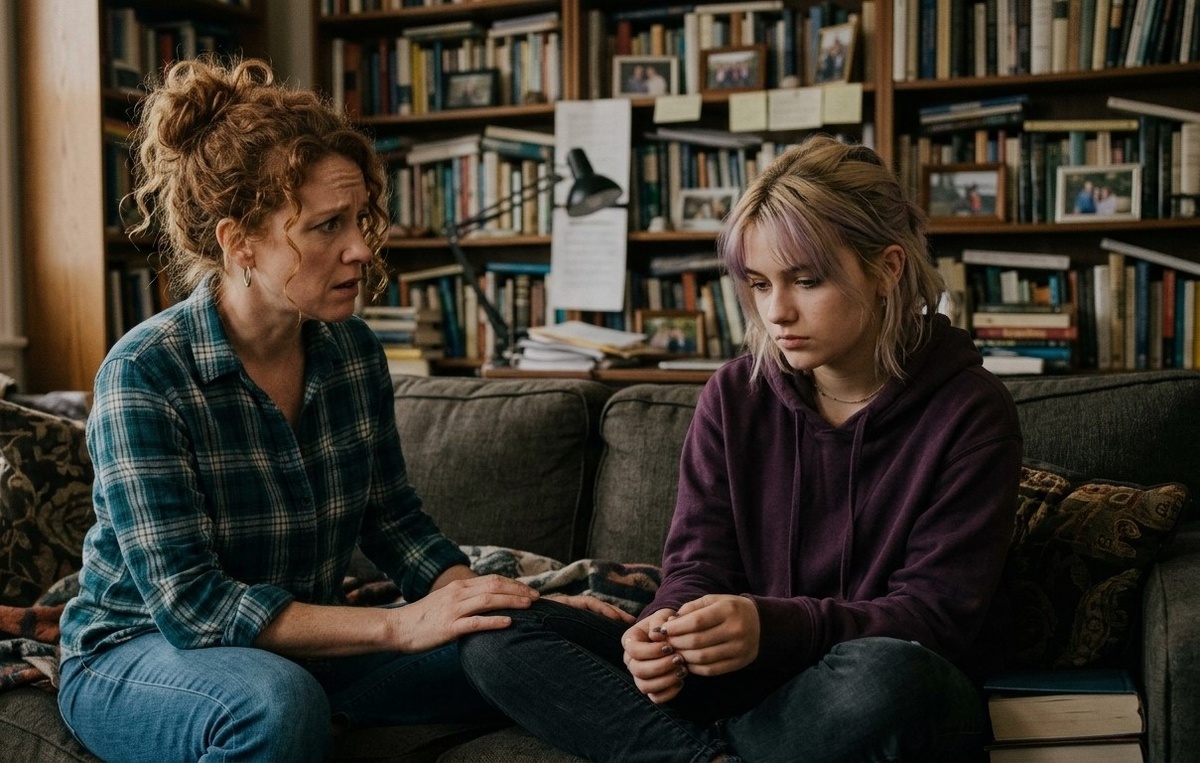 Мы прошли в гостинную, которая была освещена мягким тёплым светом. Я устало рухнула на диван.