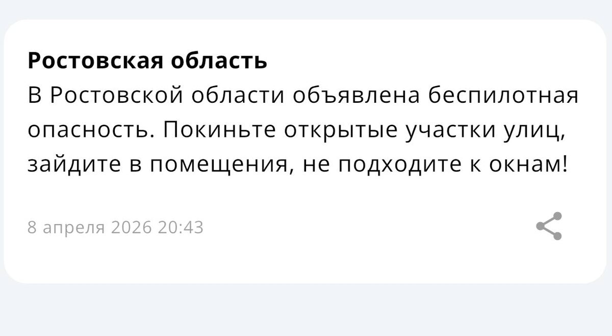 ❗️❗️❗️В Ростовской области объявлена беспилотная опасность