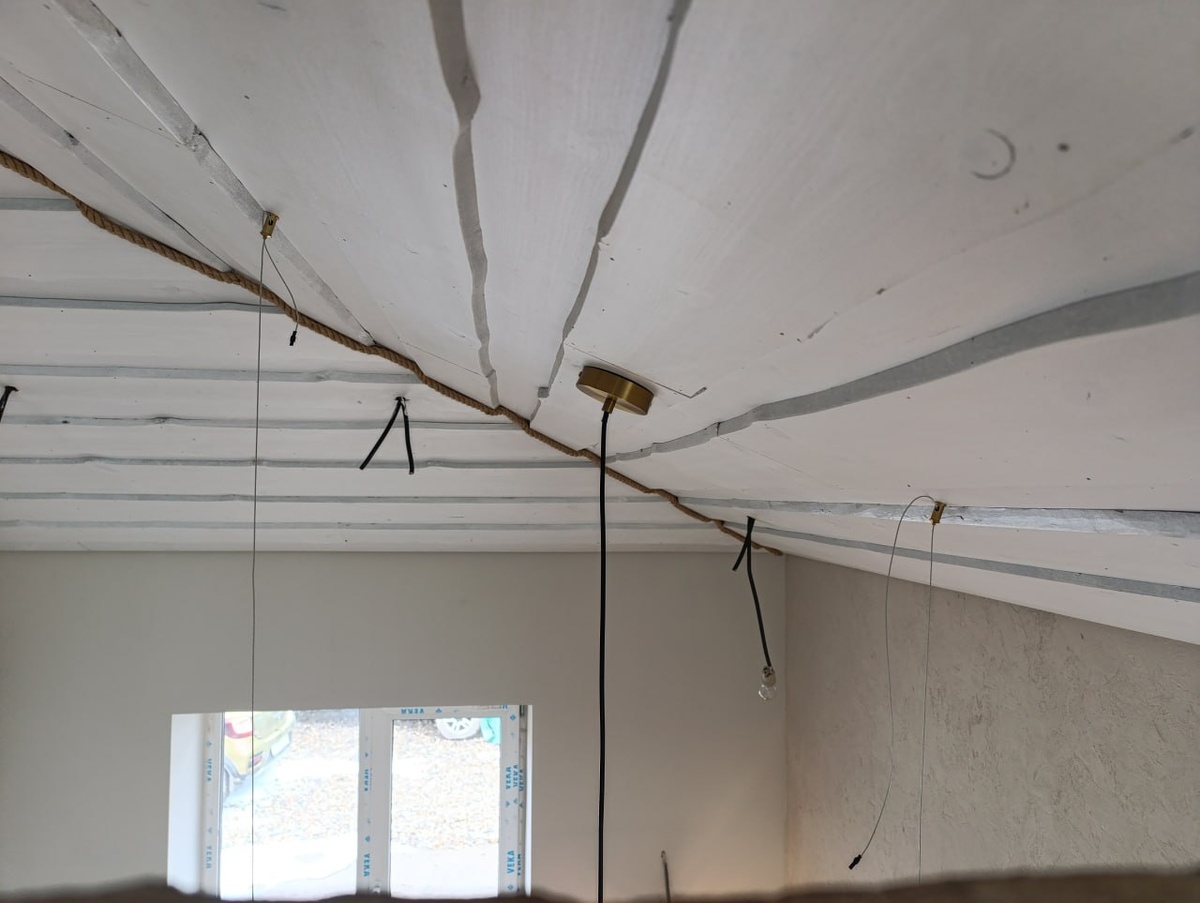 Не надо так. Существуют специальные платформы, запиленные под определённым углом, для того чтобы потолочная розетка светильника была горизонтально. Это недорого и красиво, а в случае, если светильник висит на проводе, то и единственно правильно (тут на тросиках) Можно приобрести готовые, есть как деревянные разных пород, так и пластиковые. Или изготовить самостоятельно. #elekt_riki