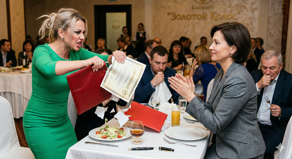 Она встала. Медленно, театрально. Весь зал — а там гуляли ещё две свадьбы — на секунду притих. Борис Игоревич кашлянул в кулак, но Жанну уже несло. Она чувствовала себя хозяйкой положения. Она была «своей» в головном офисе, а я — «приблудной» из производственного сектора, которая вечно пахнет спиртом и стерильностью.
