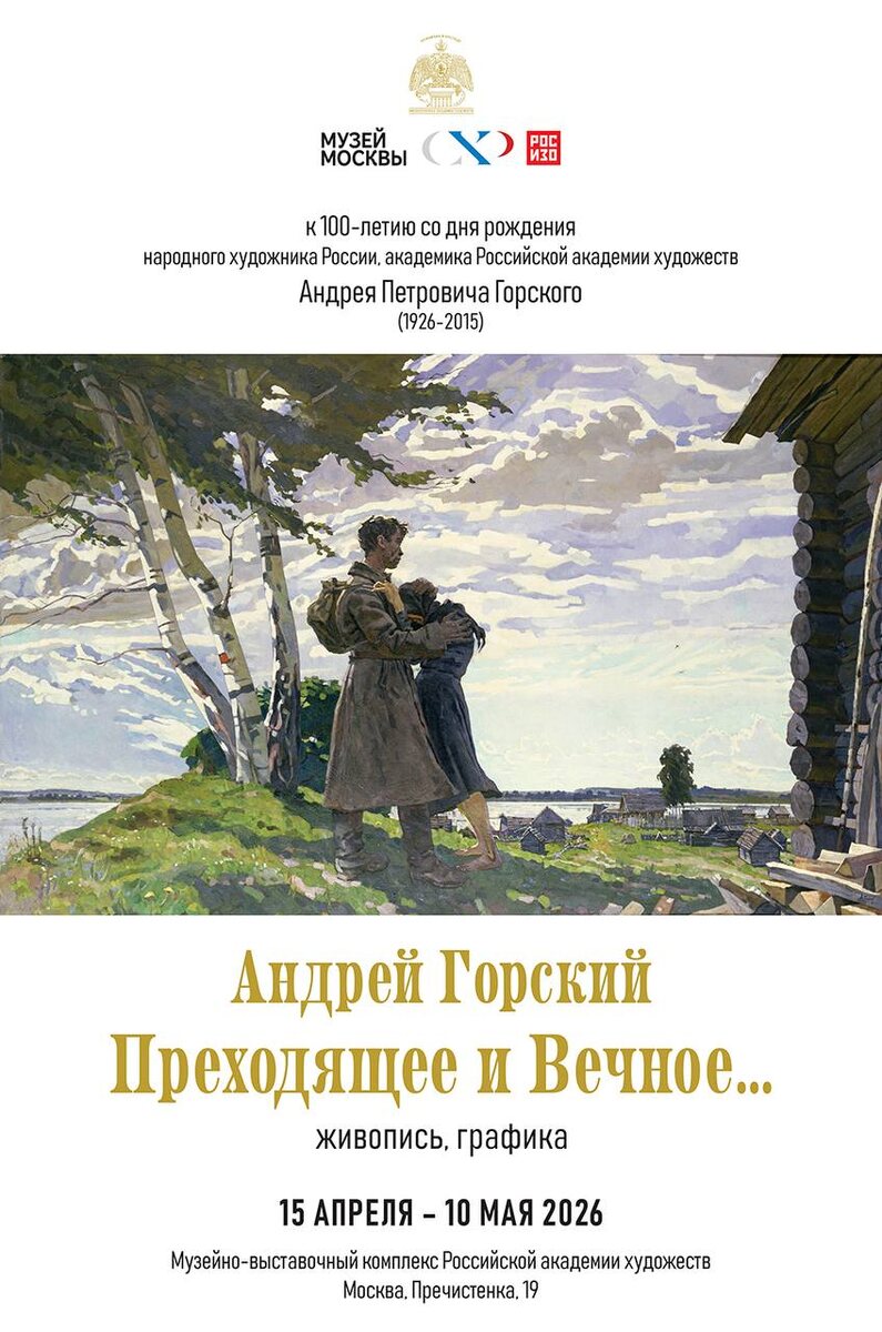 Преходящее и вечное» в МВК РАХ Российская академия художеств представляет выставку, приуроченную к 100-летию со дня рождения народного художника РФ и действительного члена РАХ Андрея Петровича Горского (1926-2015). Масштабный юбилейный проект «Андрей Горский. Преходящее и вечное»продемонстрирует несколько десятков произведений из фондов Государственногомузейно-выставочного центра «РОСИЗО», Музейного объединения «Музей Москвы», ВТОО«Союз художников России», частных собраний и коллекции семьи автора.