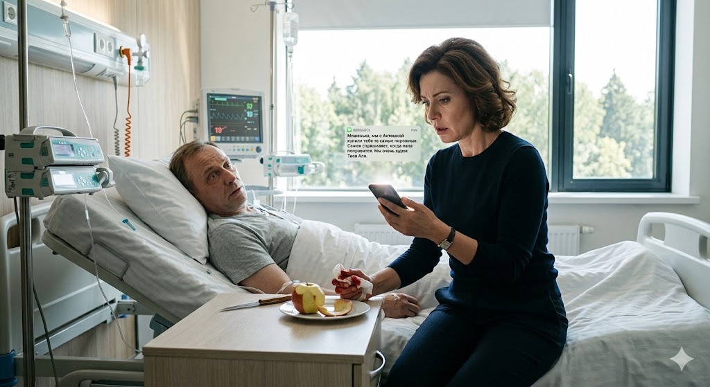 Она вспомнила тот день в палате интенсивной терапии. Не было ни грозы, ни драматичных теней на стенах. Были только резкий запах хлорки, жужжание кондиционера и слепящий свет флуоресцентных ламп. Михаил лежал на кровати после инфаркта — бледный, постаревший, но в сознании. Врачи давали осторожные, но позитивные прогнозы. Елена сидела рядом, чистила ему яблоко, стараясь срезать кожуру одной длинной спиралью — он так любил.