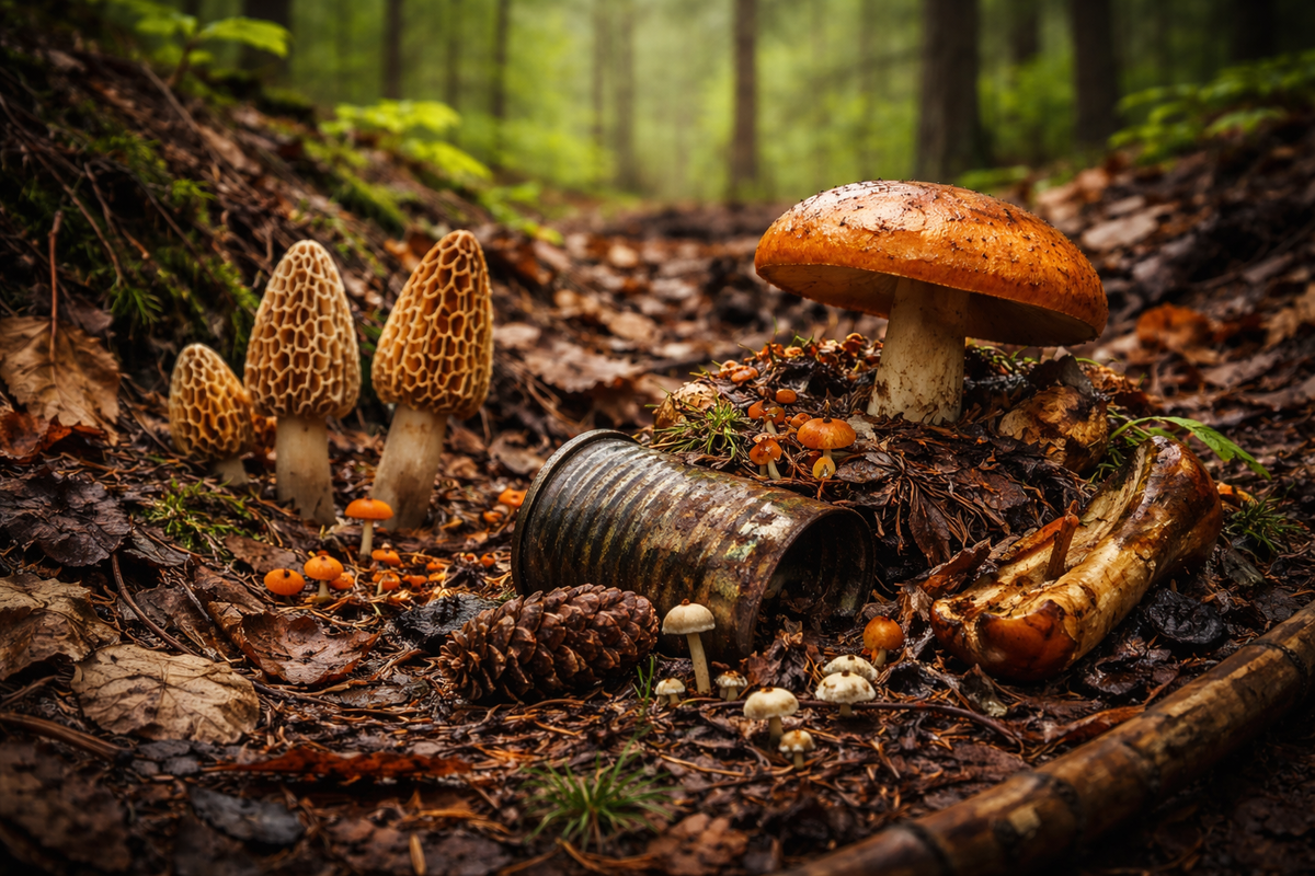 С наступлением весны лес начинает постепенно пробуждаться после долгой зимы. Снег тает, почва насыщается влагой, а на поверхности земли появляется множество прошлогодних листьев, веток и другой органики. Именно в это время особую роль начинают играть весенние грибы - своеобразные «мусорщики» лесной экосистемы. Они выполняют важную природную функцию: перерабатывают растительные остатки, очищая лес и возвращая питательные вещества обратно в почву. Весенние грибы появляются раньше большинства других грибов. Пока деревья только начинают распускать почки, а трава едва пробивается сквозь подстилку, грибы уже активно растут. Среди них можно встретить сморчки, строчки, различные мелкие сапротрофные виды и другие ранние представители грибного царства. Их объединяет способность быстро развиваться в прохладной и влажной среде, характерной для начала весны. Основная роль таких грибов - разложение органических остатков. В лесу постоянно накапливаются опавшие листья, хвоя, сухая трава, веточки и ост