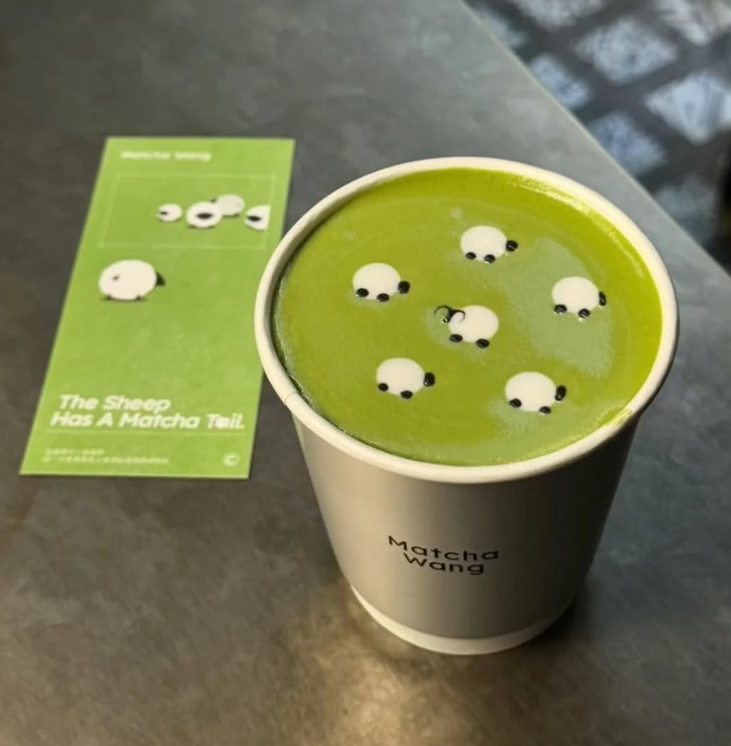 В качества основы в шанхайской кофейне предлагают три китайских сорта матчи — из Шаосина, Лэшаня и Сяоганя. Сверху — густой слой молочной пены и слой матча крема, на котором бариста вручную делает небольшие рисунки в форме овечки. Однако люди готовы стоять в очереди за этим напитком по 30-60 минут не только из-за милого вида напитка: он стал популярен в том числе из-за необычного тренда «убить овечку». Для этого на камеру снимают свой первый глоток, который уничтожает нарисованных овечек. Видео с трендом показали у нас в MAX. Птичку овечку жалко 🙈 ✅ «Юань да Марья» в MAX
