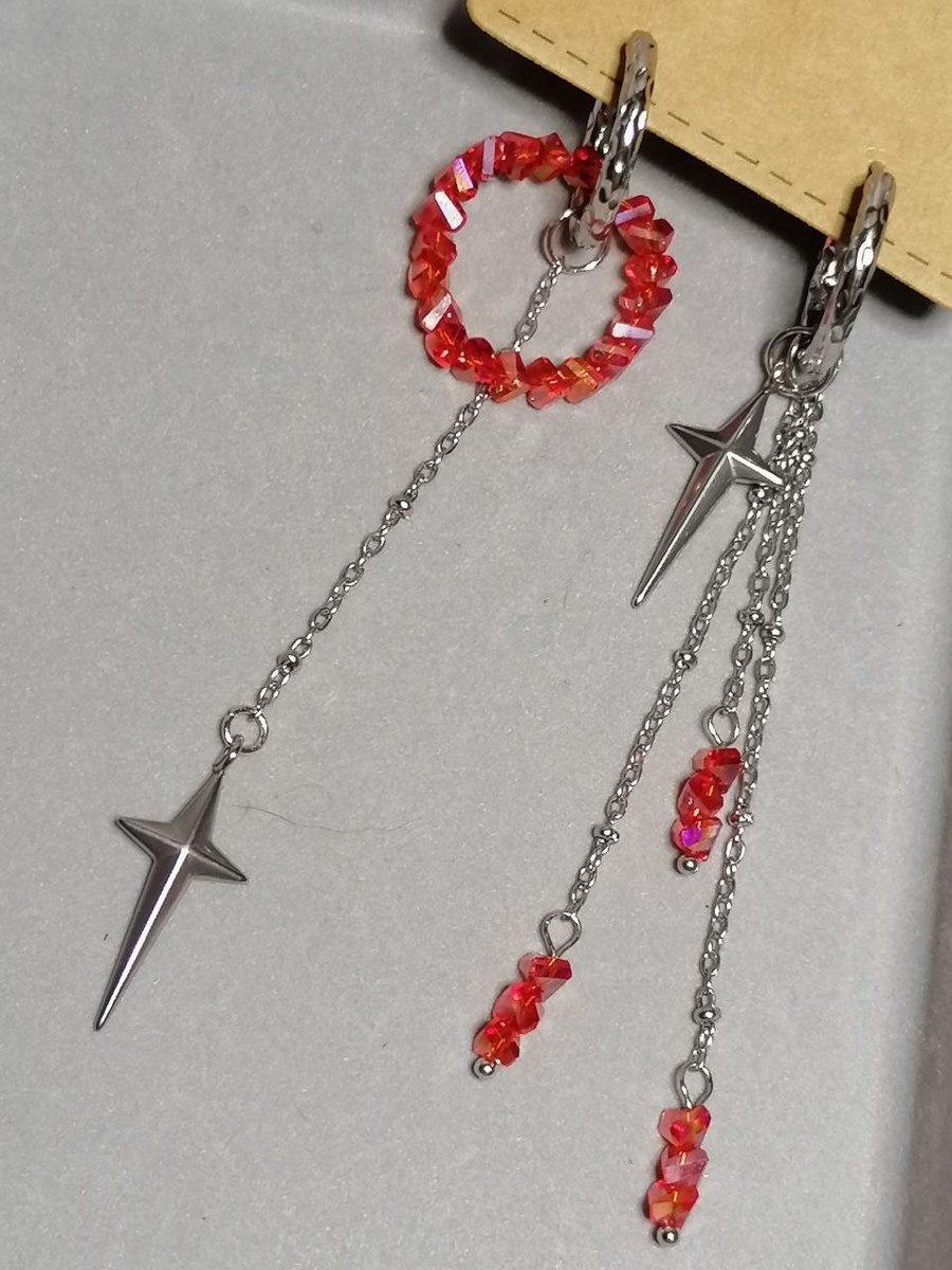 Ассиметричные серьги конго с алмазным стеклом