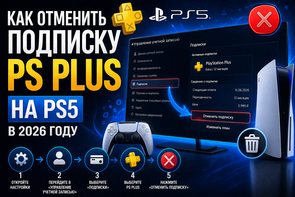 Кратко: Настройки → Пользователи → Подписки → PS Plus → Отключить автопродление. Подписка доработает до конца оплаченного периода, деньги за остаток не возвращают. Перед отменой подумайте — раздачи окупают Essential за один месяц. Как отключить автопродление на PS5 1. Зайдите в Настройки (шестерёнка на главном экране) 2. Пользователи и учётные записи 3. Учётная запись → Подписки 4. Найдите PlayStation Plus 5. Нажмите «Управление подпиской» 6. Отключите автопродление После отключения подписка продолжит работать до конца оплаченного периода. Если заплатили за год — будет работать весь год. Sony не забирает оставшееся время. Через браузер (без консоли) Если PS5 нет рядом: 1. Откройте store.playstation.com в браузере 2. Войдите в аккаунт 3. Нажмите на аватар → Управление подпиской (или Настройки аккаунта → Подписки) 4. PlayStation Plus → Отключить автопродление Через PS App: Откройте PS App → Настройки (шестерёнка) → Подписки → PS Plus → Отключить автопродление. Все три способа делают одно