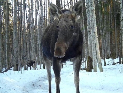 Лосиха с лосёнком и рысь после зимы попали в фотоловушки "Калужских засек