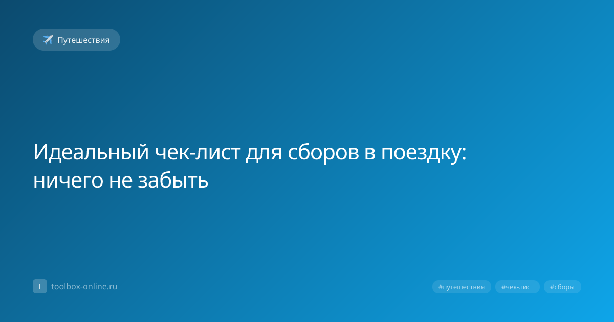 Сборы в поездку без списка — это гарантия забыть что-то важное. 73% путешественников забывают хотя бы одну нужную вещь. Чек-лист экономит нервы и деньги (покупать зарядку или адаптер в аэропорту — втридорога). Составьте базовый список и адаптируйте его под каждую поездку. Начинайте собираться за 2–3 дня, а не в последний вечер. Выложите все вещи на кровать, затем уберите 30% — вы точно берёте лишнее. Используйте организаторы и компрессионные мешки для экономии места. Лайфхак: сфотографируйте содержимое чемодана перед закрытием. Если багаж потеряется, фото поможет при подаче заявления в авиакомпанию. Также держите смену одежды и предметы первой необходимости в ручной клади. Наш чек-лист для путешествий можно настроить под тип поездки (пляж, город, горы), продолжительность и климат. Отмечайте собранные вещи и ничего не забудете.