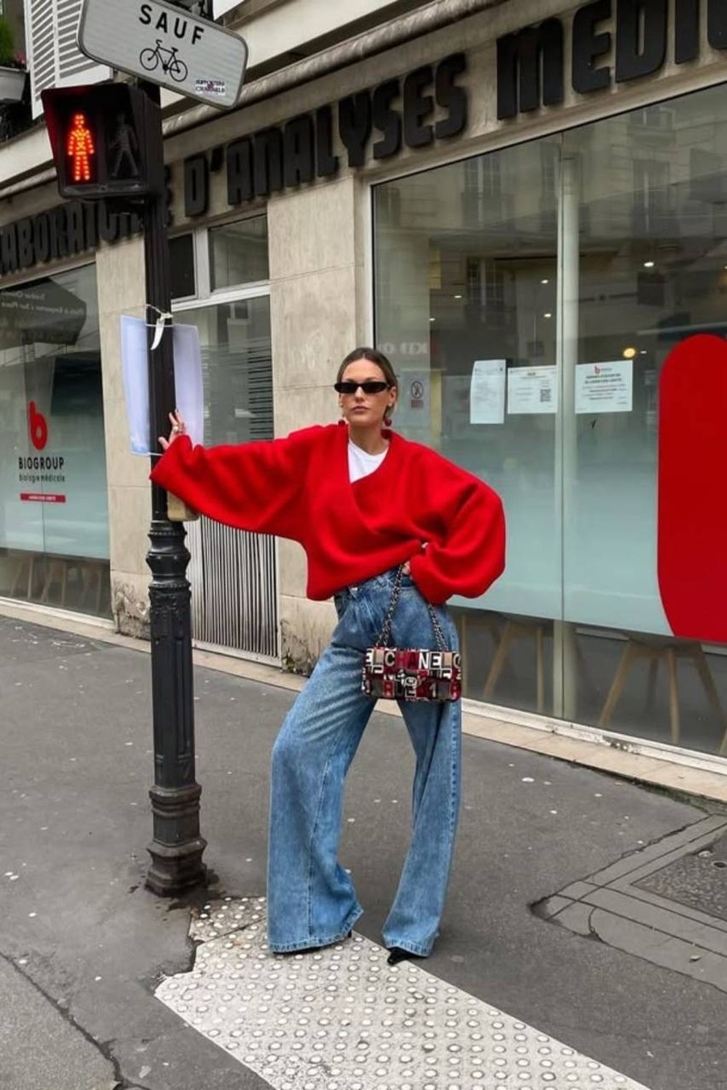 Самый повседневный и расслабленный вариант. Красный отлично дружит с джинсой. Красный свитер + синие джинсы. Красная куртка + джинсовая юбка. Это образ для прогулок, встреч с подругами и выходных. Просто, но со вкусом.