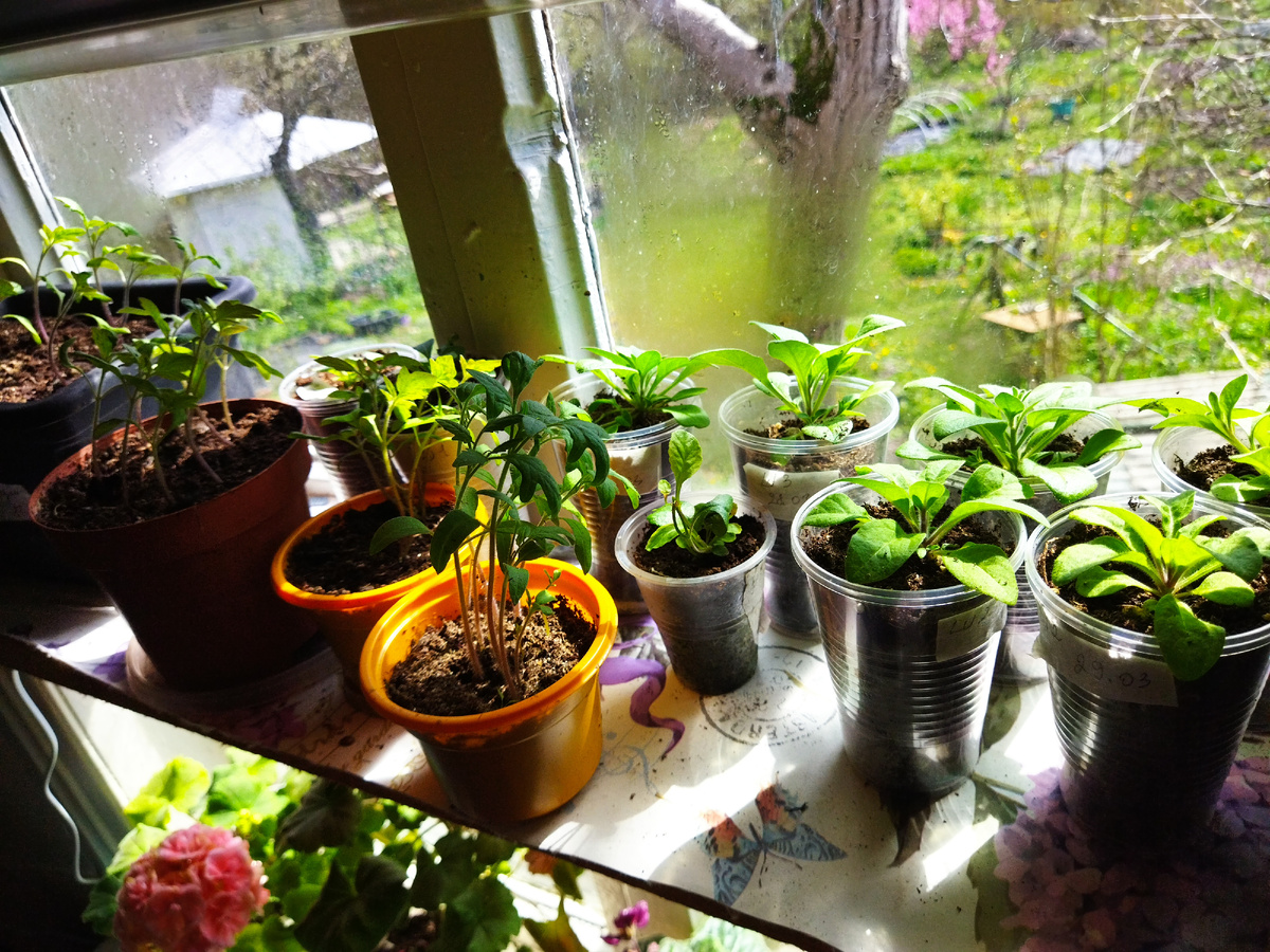 Раньше у меня была рассада только овощей, теперь это в основном цветы.