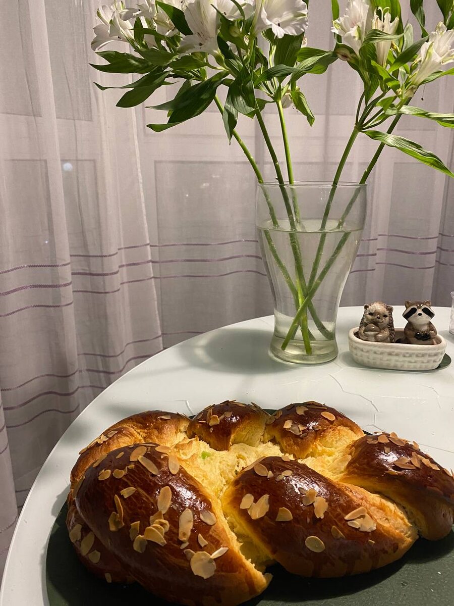 Всем привет! В Болгарии козунак можно купить в любое время года, но он считается пасхальной выпечкой. Делюсь с вами рецептом. Если вы ищите волокнистый мякиш, вам сюда!) Тесто: 350гр муки высшего сорта, 120мл теплого молока, 18гр прессованных дрожжей (или 6гр сухих), 90гр сахара, 10гр ванильного сахара, 2 яйца, 40гр сливочного масла, 30гр растительного масла, цедра 1/2 лимона, цедра 1/2 апельсина. Для начинки изюм, цукаты, орехи, 1/2 яйца для смазывания верха. Рецепт получается всегда! Секрет в долгом вымешивании!!! Для начала замесите опару из молока, сахара, дрожжей и половины муки.