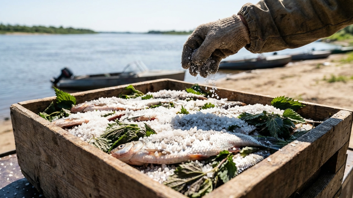 Вода в реке у берега прогрелась и стала теплой, как парное молоко, садок висит на мелководье, и рыба в нем от нехватки кислорода начинает быстро засыпать, всплывая белыми пузами кверху. А если рыба уснула в такую лютую жару — у вас есть максимум пара часов, чтобы что-то с ней оперативно сделать. Иначе она просто протухнет, брюха вздуются, жабры побелеют, и весь ваш шикарный улов отправится на корм местным чайкам и воронам. Довезти сырую рыбу до дома в целости по такой погоде без мощного автомобильного компрессорного холодильника кажется задачей абсолютно невыполнимой. Раньше я в таких стрессовых ситуациях просто скрепя сердце отпускал всю пойманную рыбу обратно, оставляя парочку самых живучих хвостов чисто на вечернюю уху. Пока не узнал один древний, проверенный веками старорусский способ сухого посола, которым успешно пользовались еще наши прадеды-промысловики, когда никаких морозильных камер и в помине не было.