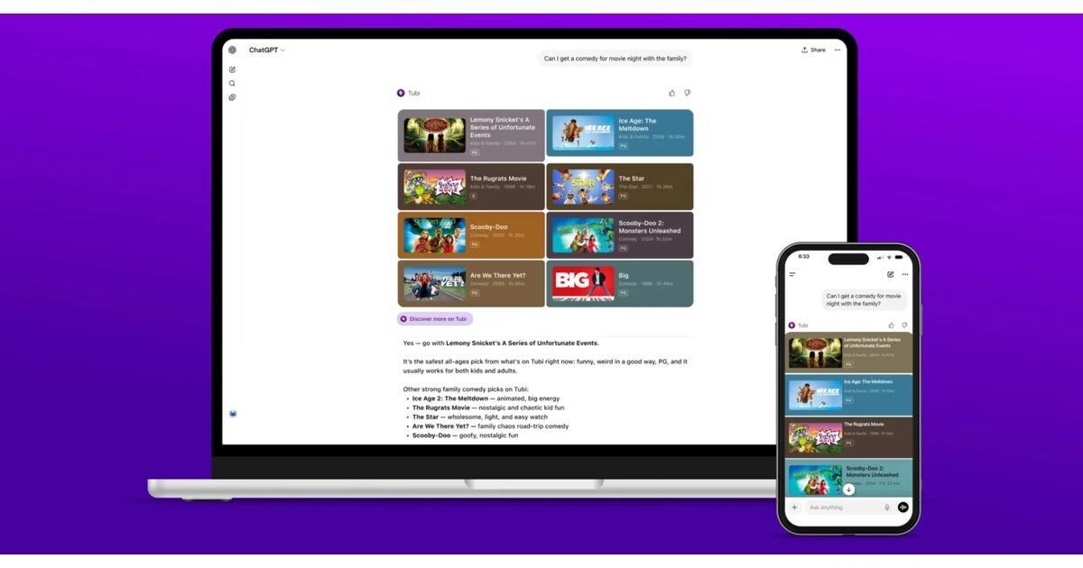 ChatGPT получил свой первый стриминговый видеосервис — Tubi. Теперь у OpenAI есть не просто чат с приложениями, а ещё одна попытка убедить людей, что ИИ умеет быть витриной для выбора контента, а не только генератором текста с амбициями. Ещё по теме: Сама идея довольно проста, почти до обидного. Пользователь подключает Tubi в магазине приложений ChatGPT, пишет «@Tubi» и просит что-то вроде «триллер на вечер» или «фильм, похожий на fever dream, но не хоррор». В ответ получает подборку из каталога Tubi, а затем открывает выбранный фильм уже на сайте сервиса. У Tubi, между прочим, заявлено более 300 000 фильмов и эпизодов сериалов, так что запас для таких подборок у него не игрушечный. ⚡Подписывайтесь на канал itzine и канал подкаста ForGeeks в Telegram! Там самые свежие новости про технологии, гаджеты и космос. По сути, это не новый плеер внутри ChatGPT, а умный слой рекомендаций сверху старой доброй веб-страницы. И тут OpenAI делает ход, который любят все платформы на ранней стадии: сна