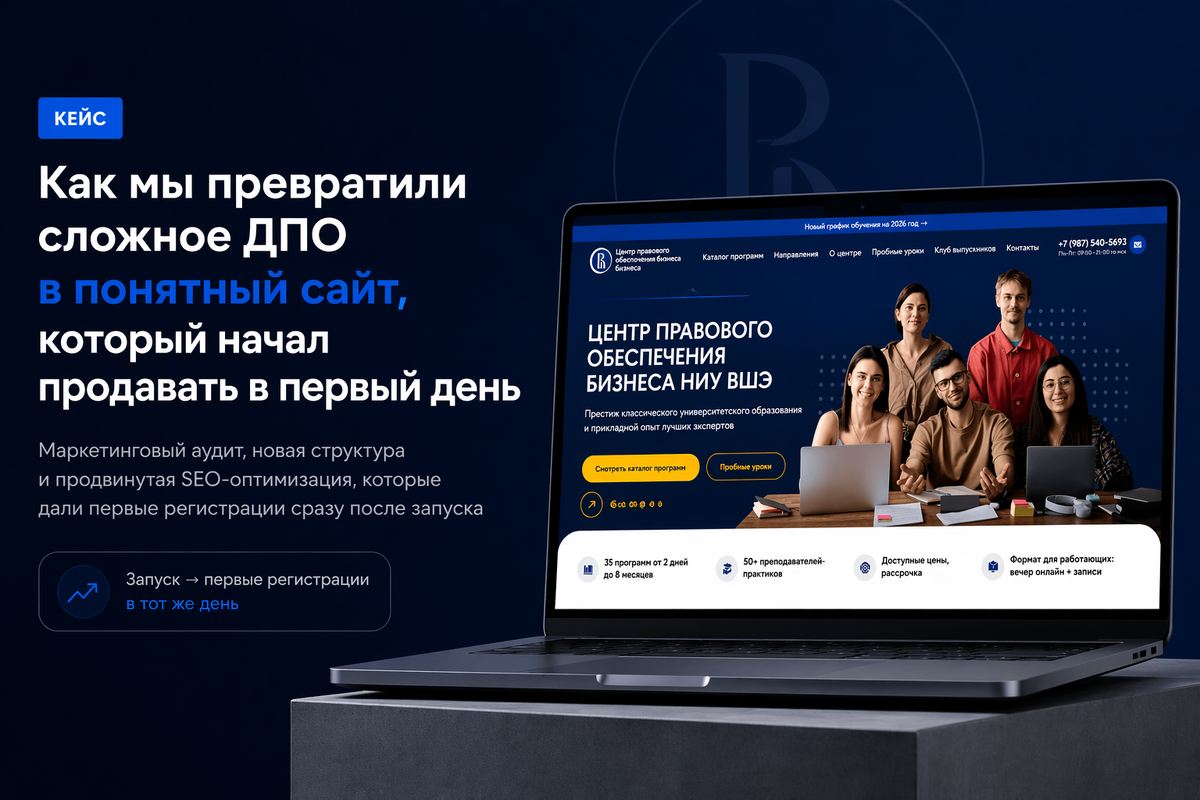 В нашем случае сработала связка из нескольких элементов: понятный язык, логичная структура, сильный путь пользователя, усиленные блоки доверия, корректная упаковка программы и более продвинутая SEO-оптимизация. По сути, мы не просто сделали новый сайт. Мы собрали новую цифровую логику продаж для ДПО.