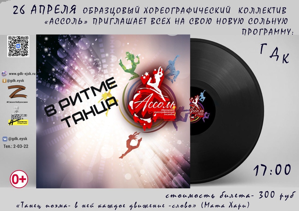 26 апреля в 17:00 Образцовый хореографический коллектив «Ассоль» приглашает всех на сольную программу «В ритме танца