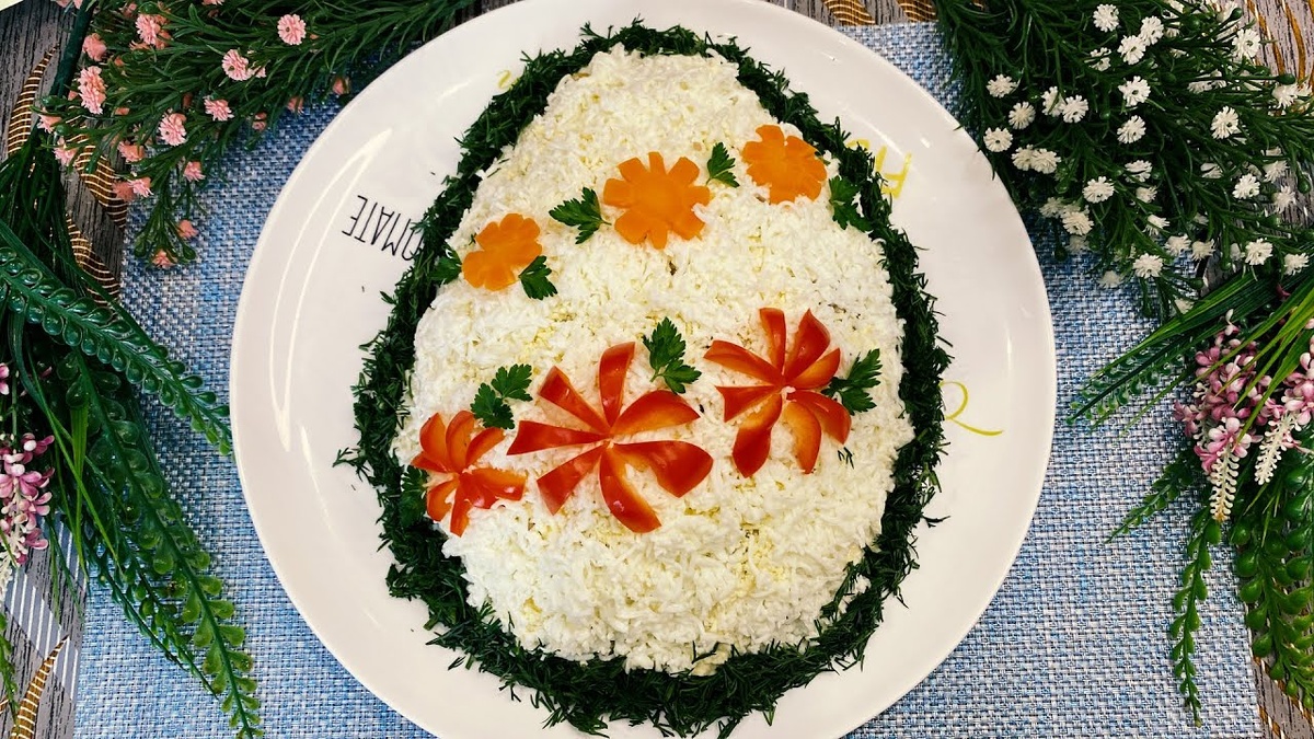 Готовим дома вкусный праздничный салат на пасху "Пасхальное яйцо". Этот красивый новый салат украсит ваш праздничный стол на Пасху. Нам будут нужны: