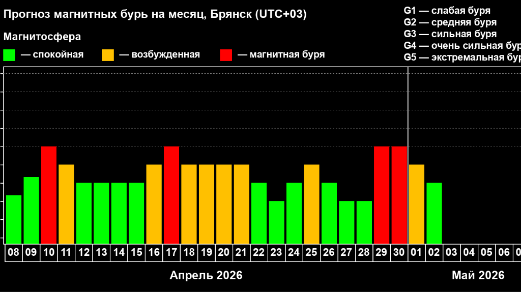 Жителей региона предупредили о возможном влиянии геомагнитных колебаний на самочувствие. Эксперты советуют метеозависимым людям в этот день больше отдыхать и избегать стрессов. Жителей Брянской области предупредили о магнитной бури. По данным лаборатории солнечной астрономии ИКИ РАН и ИСЗФ СО РАН, её воздействие ожидается 10 апреля. Событие отнесено к классу G1, что соответствует слабому уровню. Воздействие геомагнитных колебаний коснется и территории Брянщины. Специалисты отмечают, что подобные явления способны влиять на самочувствие метеозависимых людей. В частности, возможны головные боли, усталость и перепады настроения. Врачами рекомендовано в эти дни уделять больше времени отдыху. Также советуют избегать чрезмерных физических и эмоциональных нагрузок. Ранее мы сообщали, что Брянская область окажется под влиянием циклона: синоптики обещают дождь, мокрый снег, порывистый ветер и гололедицу. Температура в ночные часы — от −4 до +3 ∘C, в дневные — от +2 до +9 ∘C. Подобная погода сохр