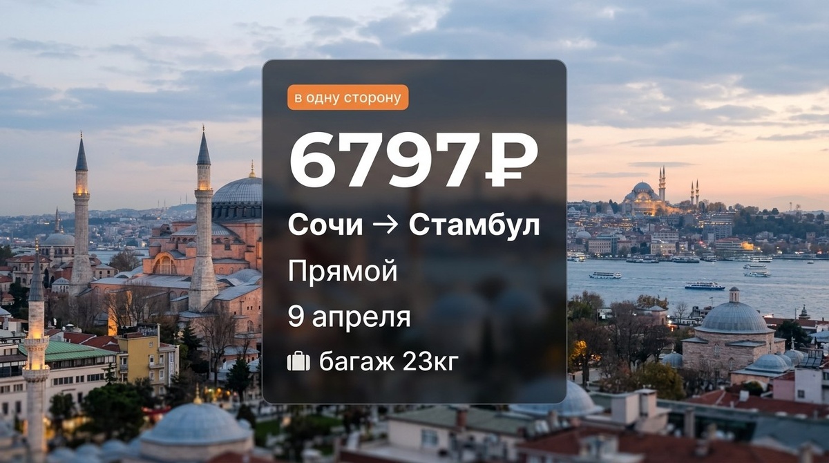 • Сочи — Стамбул, 9 апреля, багаж 23 кг — 6 797₽ • Новосибирск — Фукуок, 18 апреля, багаж 10 кг — 24 117₽ • Екатеринбург — Тбилиси, с 15 по 27 апреля, багаж 20 кг — 36 574₽ • Москва — Нячанг, с 10 по 19 апреля, багаж 10 кг — 44 281₽ Эти предложения актуальны прямо сейчас, поэтому советуем не медлить с бронированием.