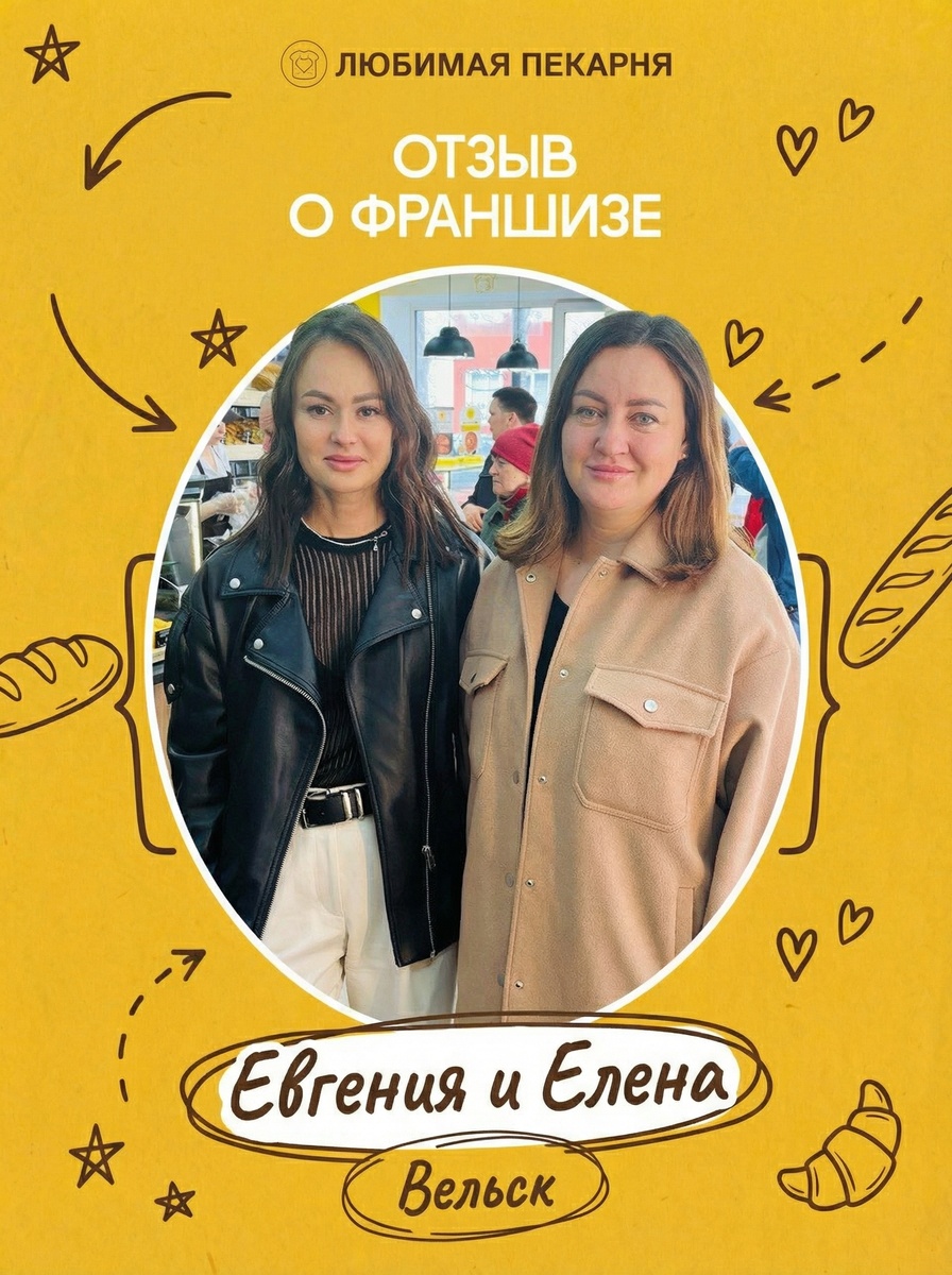 Любимой пекарне 10 лет! Делюсь историей партнёров «Любимой пекарни» Елена и Евгения, г. Вельск Наш путь в бизнес с франшизой «Любимая пекарня» начался с полного отсутствия опыта в сфере общепита — ранее мы занимались другой деятельностью. Идея пришла неожиданно: в одной из командировок мы случайно зашли в небольшую пекарню.