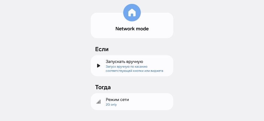 4. Включение и отключение можно выполнить через виджет или непосредственно в сценариях. Также вы можете настроить параметры по своему усмотрению, изменив сценарий. Например, можно включить только 2G при подключении к Wi-Fi сети или по расписанию. Источник