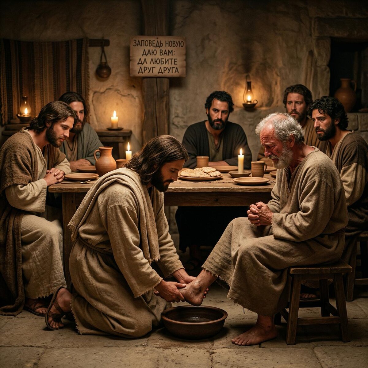Он знал, кто предаст Его. Знал, кто отречется. Знал, кто уснет в самый тяжелый час. И все равно встал, взял умывальницу и начал умывать им ноги. Великий четверг открывает перед нами одну из самых пронзительных картин Евангелия. Христос, Господь и Учитель, Тот, Кому принадлежит вся власть, склоняется перед учениками и делает то, что в представлении многих считалось делом слуги. В этом — переворот всего человеческого понимания силы. Мир привык, что сильный требует служения себе. Что значимость доказывается высотой положения. Что власть поднимает человека над другими. Но Христос показывает совсем иное: истинная сила не унижает, а склоняется. Не возвышает себя, а любит. Не требует доказательств собственной важности, а служит. И особенно потрясает не только сам поступок, а то, кому именно Он умывает ноги. Не идеальным людям. Не тем, кто в эту ночь проявит безупречную верность. Не тем, кто полностью поймет Его сердце. Он умывает ноги тем, кто уже совсем скоро покажет свою слабость. Тем