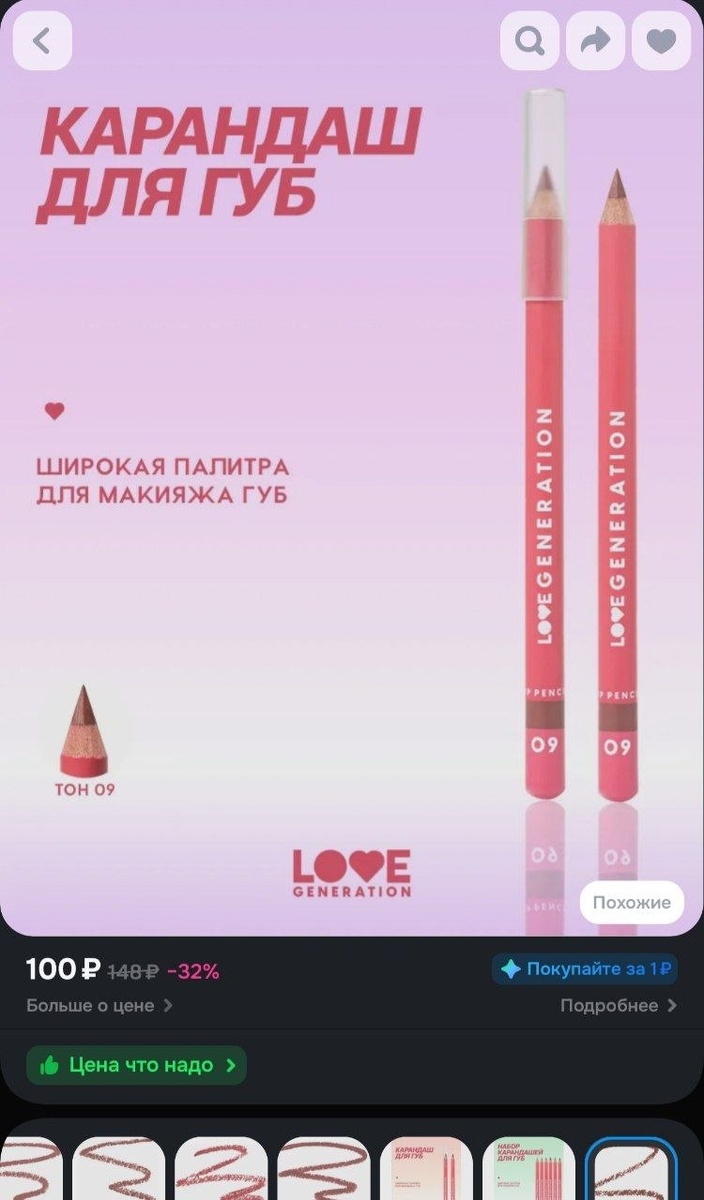 LOVE GENERATION Карандаш для губ матовый, нюдовый, тон 09, шоколадный , 1,2 г за 100₽ *