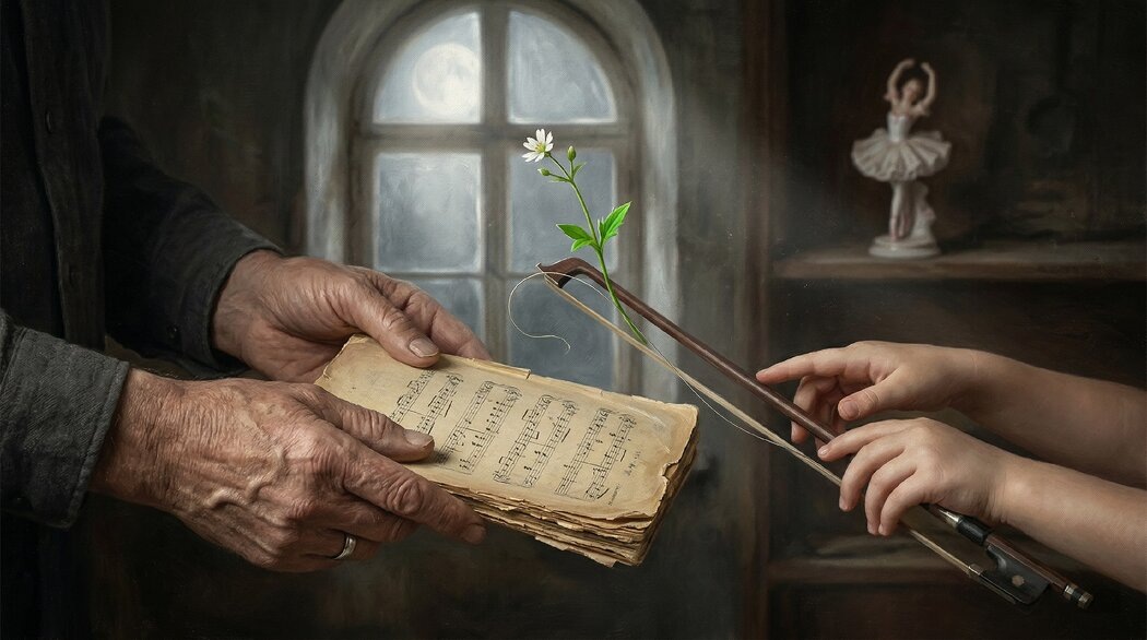 Он пришёл ко мне в пятнаддцать лет. Худой, сутулый мальчик с вечно исколотыми пальцами. Скрипка. Каждый день — до кровавых мозолей. Папа — инженер, в юности игравший в ресторанном ансамбле и мечтавший о консерватории. Но родилась семья, нужны были деньги, смычок лёг в футляр на тридцать лет. И вот теперь сын должен был сыграть ту мелодию, которую отец не доиграл.