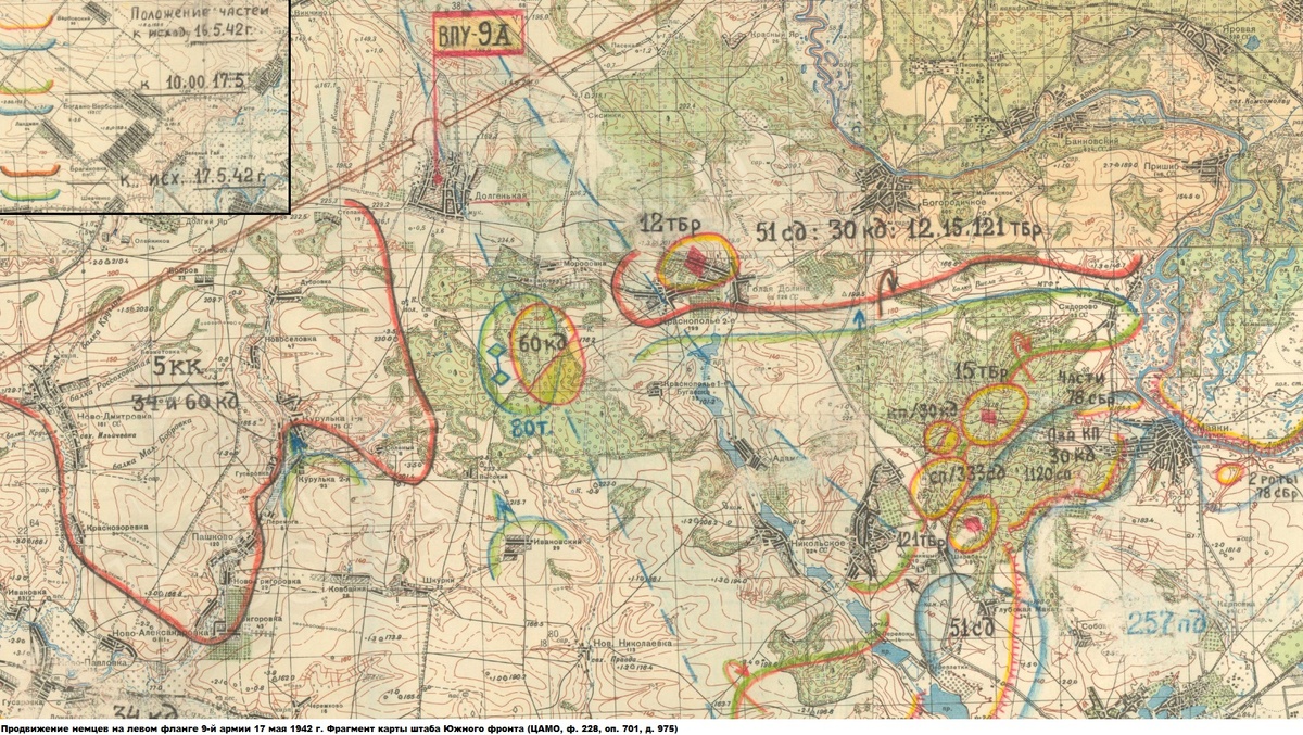 При наличии запасов горючего на 2,5-3 ч и достаточного количества боеприпасов в танках мог активно обороняться на занятом рубеже Б. Еремовка в течение 19.05, чего последний не сделал.
