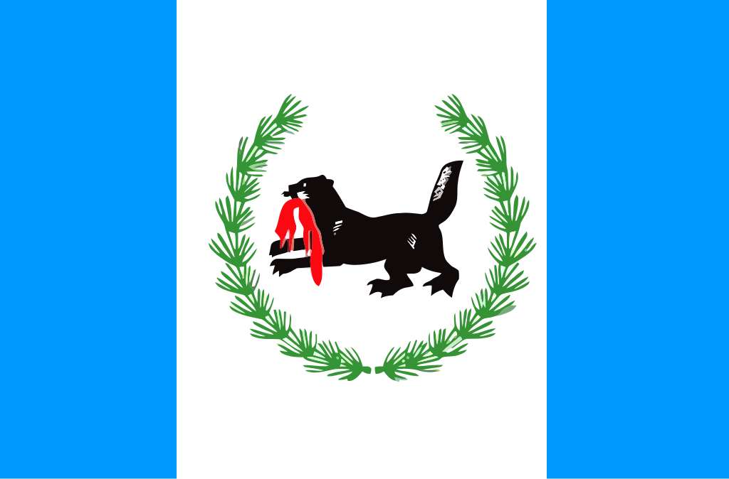 • пасть — с выраженными зубами, в зубах — соболь (символ богатства Сибири мехами);