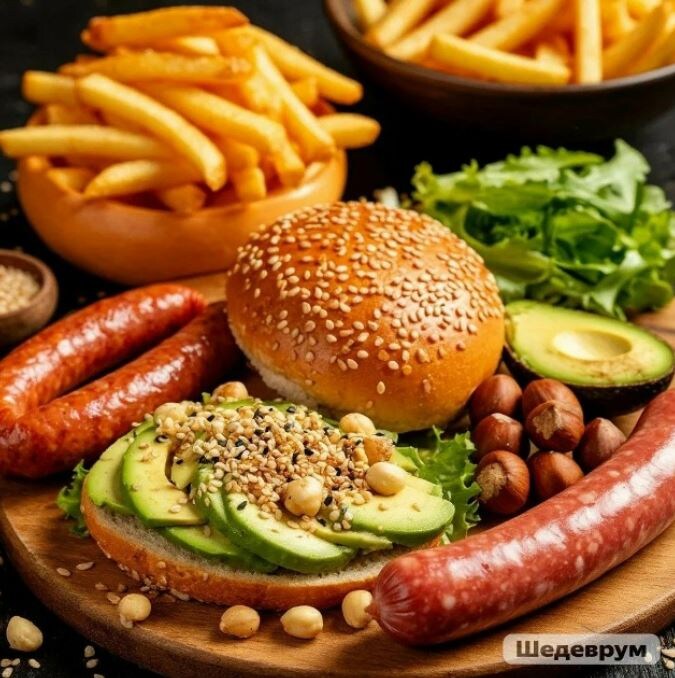 Мы привыкли думать, что от жира толстеют, его нужно избегать. Но давайте честно — организм так не считает. Жиры — это не бомба замедленного действия, а важнейший источник энергии. Без них не усваиваются витамины, не строятся клеточные мембраны, а гормоны просто отказываются работать. Проблема не в жирах как таковых, а в их качестве и количестве. Жиры бывают растительные и животные. И организму нужны все, но в разных пропорциях. Рекомендовано, чтобы жиры занимали около 30% от общей калорийности рациона. Ненасыщенные жиры в основном растительного происхождения, например они содержатся в авокадо, фундуке, кунжуте. Также к ненасыщенным жирам относится рыбий жир. Насыщенные жиры — товарищи более тяжелые. Они прячутся в мясе, молочных продуктах и сырах, в кокосовом масле или выпечке. Выбирайте разные источники растительных и животных жиров и комбинируйте их между собой. Так рацион будет более разнообразным и сбалансированным. Есть еще одна обособленная группа жиров — промышленные трансжиры,
