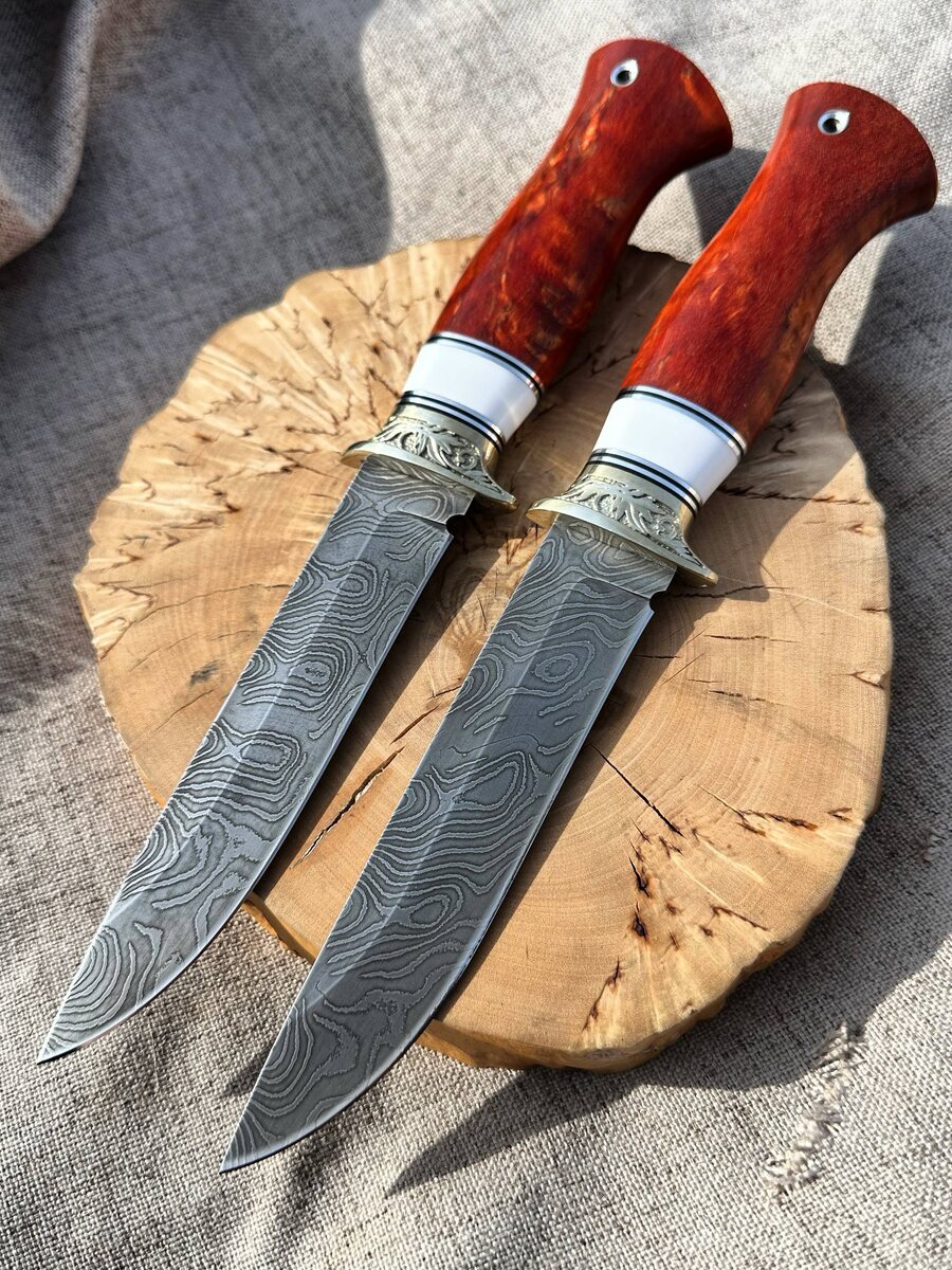 » 🔪 Клинок из волнистого дамаска(HRC 62) — гарантирует долгую остроту, агрессивный рез и настоящую рабочую мощь. Бритвенная заточка и чуть вогнутая линза от середины спусков позволяют легко справляться с любыми разделочными задачами: мясо, рыба, дичь — всё под контролем! Рукоять — произведение искусства: 🌳 *Стабилизированная карельская берёза (красная) ⚪️ Белый акрил 🪙 Мельхиор Эргономика и надёжный хват даже мокрой рукой — для тех, кто ценит качество и эстетику! В комплекте — классические ножны По желанию — изготовим фирменные формованные ножны из кожи растительного дубления* (+8000 руб.) --- 💰 Цена по акции: 9151 руб. (обычная цена: 10766 руб.) --- 🎁 Идеальный выбор для охотников, рыбаков, коллекционеров и подарка настоящему мужчине. --- Заказать просто: ✉️ Пишите [@Nazarklinokbot] 📞 Или звоните/WhatsApp: +79101343831 Telegram скоро заблокируют, подпишитесь на наш канал в MAX - подписаться