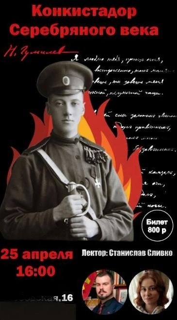 » ✔ Литературная программа о Николай Гумилёв ✔ Погружение в эпоху Серебряного века ✔ Стихи в живом исполнении ✔ Рассказ о жизни поэта и его пути ✔ Автор и режиссёр — Валерия Гапонова 📅 Когда: #25_апреля, 16:00 ⛳ Где: «ДоброДепо», ул. Слободская, 16 💳 Стоимость: 500–800 ₽ 📞 Контакты: +7 (924) 435-89-48, +7 (994) 147-16-05 Билеты Подпишись на случай, если заблокируют Телеграм👉 MAX