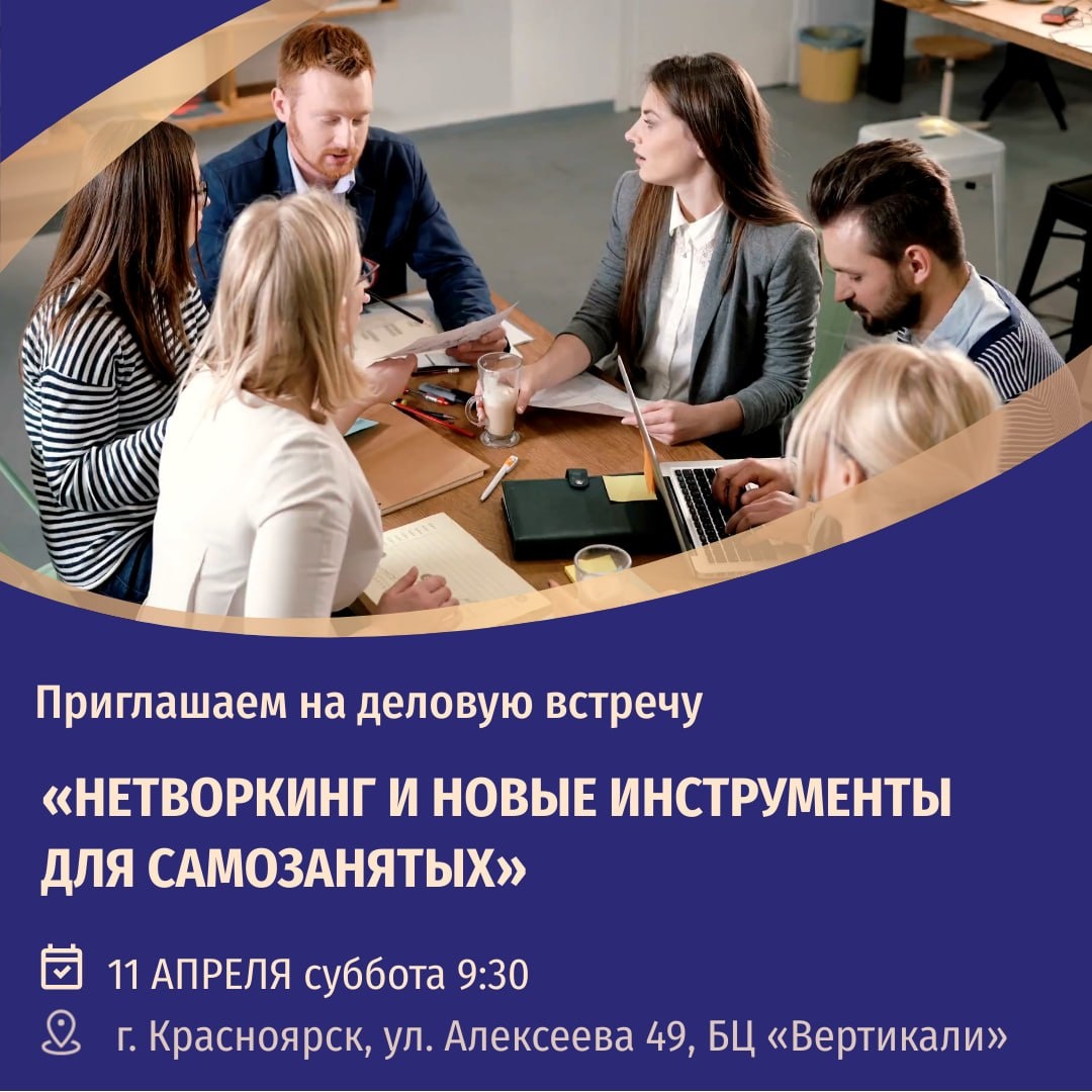 ! 🔔 Приглашаю на деловую встречу «Нетворкинг и новые инструменты для самозанятых» 🗓 11 АПРЕЛЯ суббота 9:30 Здесь Вы найдёте партнёров, вдохновение и современные инструменты для развития 📈 На встрече Вы: ⭐️ Познакомитесь с возможностями для самозанятых специалистов ⭐️ Узнаете о преимуществах и перспективах статуса ИП на НПД (индивидуального предпринимателя на налоговом режиме самозанятости - налог на профессиональный доход) ⭐️ Освоите современные инструменты для привлечения и удержания клиентов ⭐️ На практике увидите, как работают IT-сервисы для самозанятых и предпринимателей ⭐️ Примете участие в нетворкинге и ярмарке ⭐️ Получите шанс поучаствовать в розыгрыше от партнёров мероприятия ⭐️ Узнаете, как стать партнёром предпринимателей города, тематических встреч и бизнес-форумов 🗓 11.04 суббота 9:30-13:30 Регистрация 9:15 📍 БЦ «Вертикали» (напротив ТРЦ «Планета») г. Красноярск, ул. Алексеева 49 Стоимость: 300 ₽ (кофе-брейк) Количество мест ограничено! Успевайте записа
