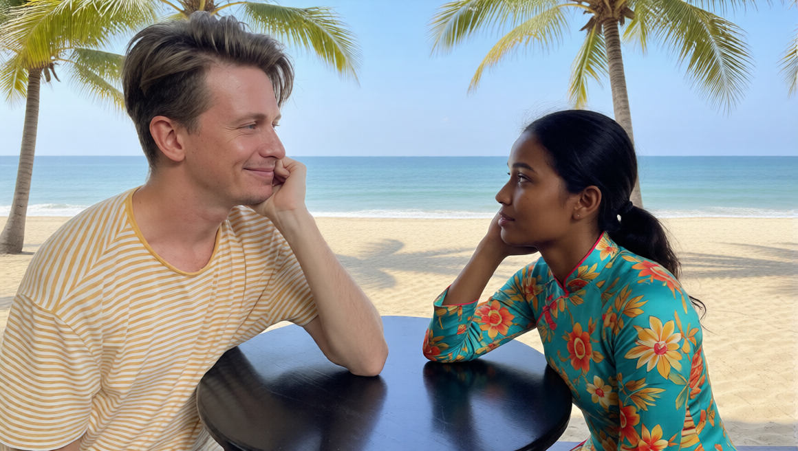 Все мы не раз слышали истории про курортные романы наших женщин где-нибудь в Турции или Египте. А вот что происходит, когда в Азию приезжают русские мужчины, я вижу своими глазами уже несколько лет, живя в Нячанге. Русские парни едут сюда не только полежать на пляже. Когда хочется настоящего тепла, внимания и искренних эмоций, многие берут билет в один конец. И летят на Восток. Вьетнам, Таиланд, Гоа, Китай, Филиппины. Здесь на обычных русских ребят местные девушки смотрят совсем по-другому. Для них это настоящая экзотика. Я не раз замечала эти взгляды и слышала истории от самих вьетнамок. Во Вьетнаме, особенно в Нячанге и Дананге, очень легко познакомиться. Воздух будто пропитан свободой. Мой знакомый русский парень, который живёт здесь уже несколько лет, рассказал одну историю. Как-то вечером в кафе у моря он разговорился с девушкой по имени Лан. Они проговорили почти до утра. Лан потом прямо сказала: «Наши мужчины тихие, очень сдержанные. А русский — он как огонь. Обнимает так, что ч