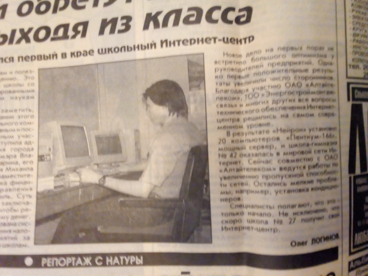 Мы просто переключились на работу с предприятиями и организациями. Особенно решили уделить внимание подрастающему поколению - школьникам. В школах уже давно был предмет "Информатика", но как правило он проводился на допотопной технике, о такой штуке как интернет учителя и школьники только читали статьи в ИТ прессе. Основной проблемой было финансирование, в бюджете не было живых денег. И тогда сотрудники Нейрона придумали как добыть средства для приобретения современной компьютерной техники и подключения интернета в школы. И всё получилось!