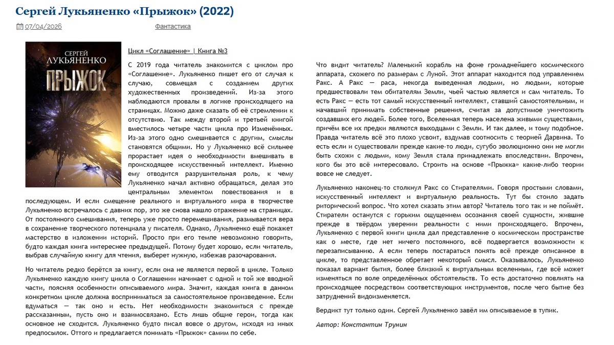 Сергей Лукьяненко «Прыжок» (2022) | Критика