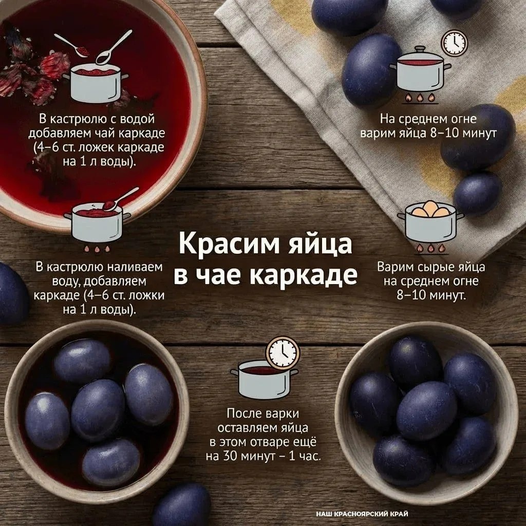 Делимся советами, как придать яйцам необычный цвет и создать красивый узор, используя рис, чай каркаде или куркуму.