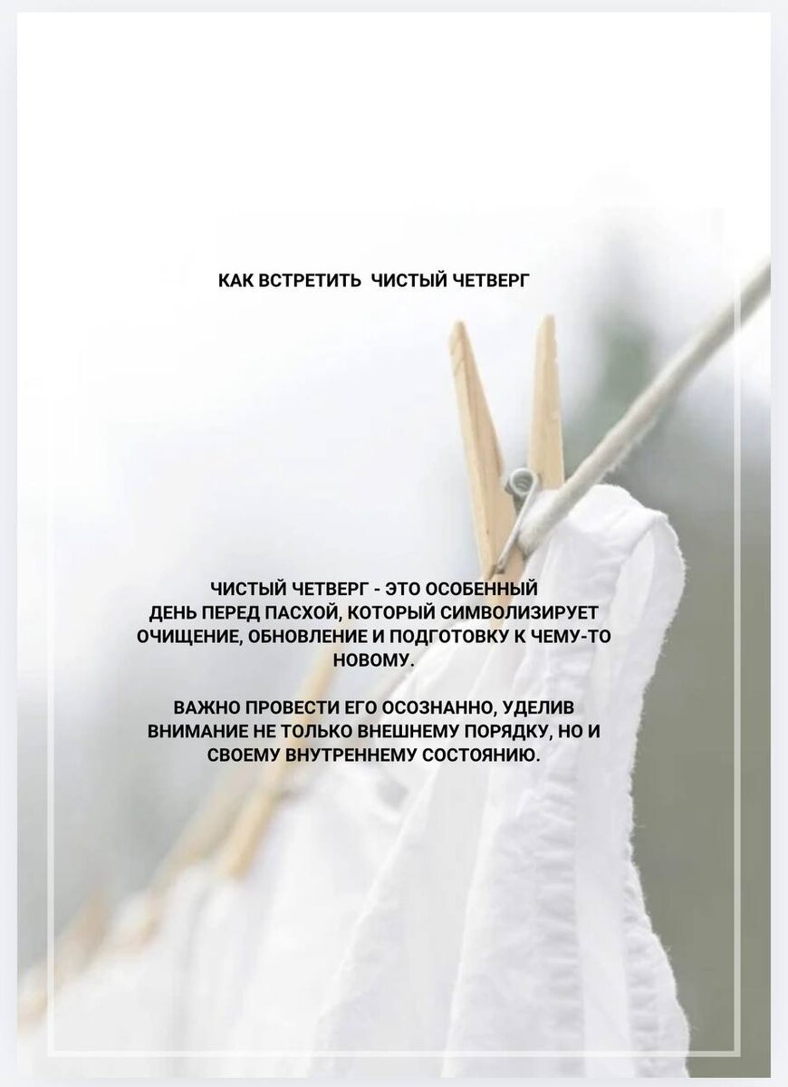 ЧИСТЫЙ ЧЕТВЕРГ Чистый четверг — это особенный день перед Пасхой, который символизирует очищение, обновление и подготовку к чему-то новому. Важно провести его осознанно, уделив внимание не только внешнему порядку, но и своему внутреннему состоянию. Я подготовила рекомендации, которые помогут освободить пространство вокруг себя и внутри себя, отпустить всё лишнее и создать место для нового и светлого. Для тех кто хочет через медитацию ВОССТАНОВИТЬ ВНУТРЕННЕЕ СОСТОЯНИЕ И ОСОБОДИТЬ МЕСТО ДЛЯ НОВОГО Пишите лично Медитация будет в записи просто надеваете наушники и путешествуете за моим голосом . Медитацию можно будет слушать в течении 3х дней в любое удобное время. С любовью,Мастер София 🫶