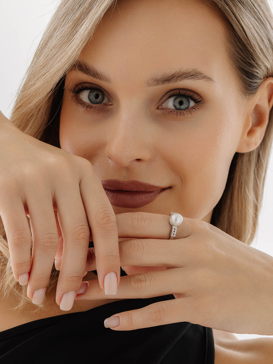 Кольцо из серебра с жемчугом из коллекции Афродита КУПИТЬ