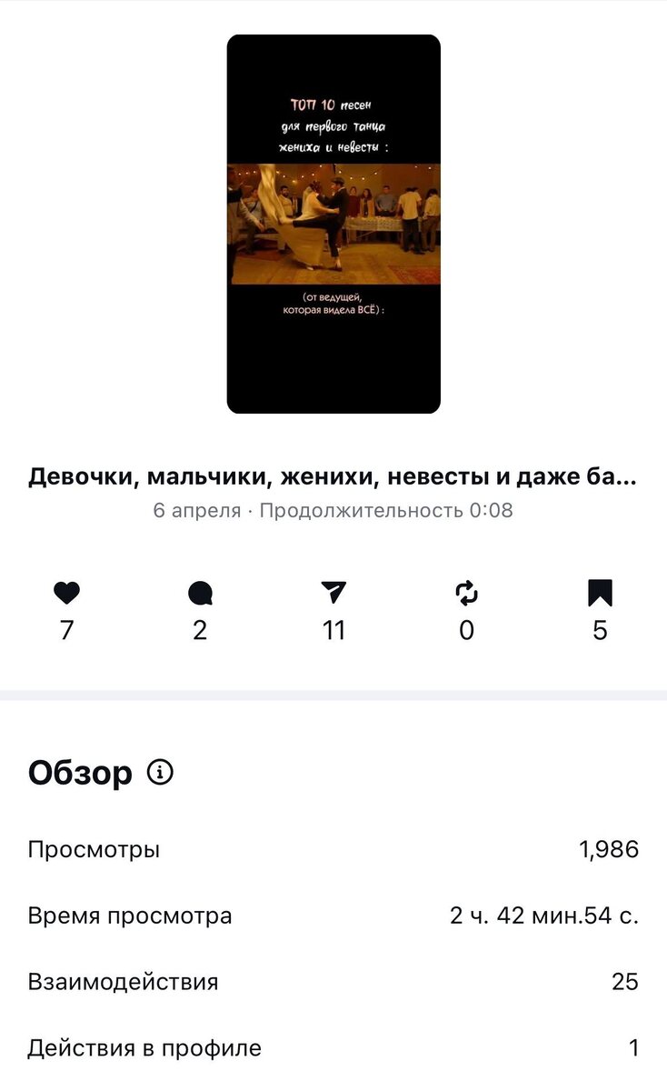 6 апреля в этом проекте мы выложили первый видео рилс ☝🏻☝🏻☝🏻 и вот какие результаты