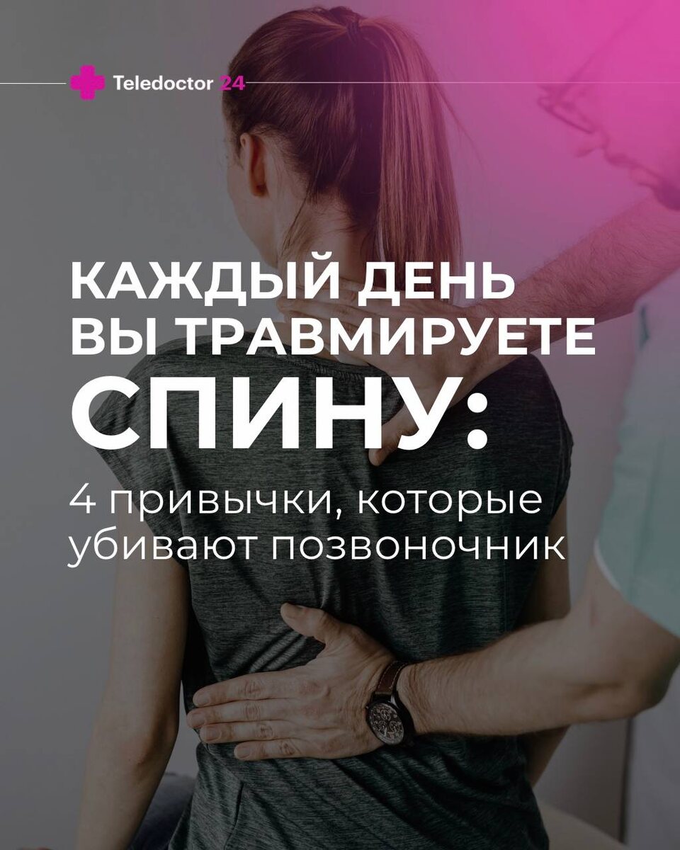 Она ежедневно выдерживает большую нагрузку, и многие проблемы возникают не от разовой ошибки, а от повторяющихся привычек. 1️⃣ Длительное сидение Даже при идеальной осанке мышцы устают, а межпозвонковые диски получают меньше питательных веществ. Длительная статическая нагрузка провоцирует усталость мышц и боли в пояснице. ✔️Что делать: каждые 30–60 минут вставать, делать лёгкую разминку или менять позу — сидя или стоя. 2️⃣ Наклон головы к телефону Исследования показывают: при наклоне головы вперёд увеличивается нагрузка на шейный и грудной отделы, а механика позвоночника нарушается вплоть до поясницы. Постепенно это может привести к болям в спине. ✔️Совет: держите экран на уровне глаз, не задерживайтесь долго в одной позе и делайте короткие перерывы. 3️⃣ Сон на животе Эта поза приводит к перегибу поясницы и длительному повороту шеи. Научные обзоры отмечают: сон на боку или спине снижает риск болей и лучше поддерживает естественные изгибы позвоночника. ✔️Дополнение: выбирайте матр
