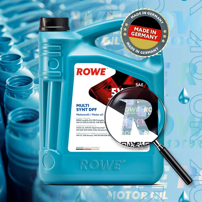С 1995 года ROWE является синонимом высококачественных и универсальных смазочных материалов. Наши ценности — высокая производительность, экологичность, инновационность, надежность и 100 % производство в Германии — являются основой нашей компании, а также залогом успеха, благодаря которому наши продукты доступны в более чем 80 странах мира. Растущая популярность ROWE также приносит с собой новые вызовы. В этом контексте для нас особенно важно защитить вас и ваш бизнес от подделок. По этой причине мы приняли различные меры, которые в будущем позволят вам быстрее и надежнее идентифицировать оригинальные продукты ROWE. В качестве первого шага мы начнем размещать голограмму в форме буквы «R» над QR-кодом на этикетках всех небольших емкостей объемом до 5 литров. Этикетки без голограмм будут использованы в течение переходного периода, который начинается сейчас. Продукты, разлитые после 1 марта 2026 года в емкости объемом до 1000 литров, в будущем будут иметь защиту от подделок над QR-кодом.