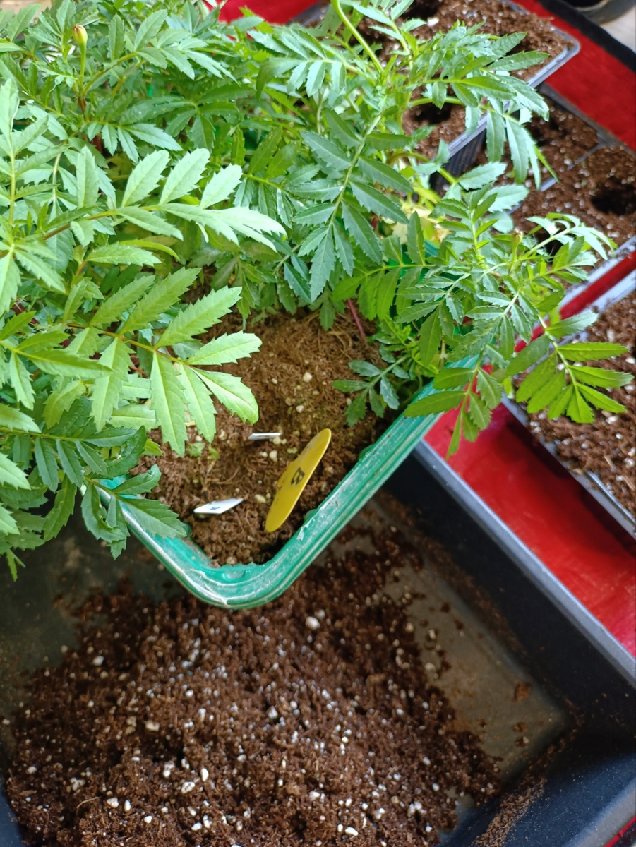 10 кассет по 6 ячеек тагетес French Petite Orange. А так же перевалку розмарина устроил с фитильный горшков в p9.