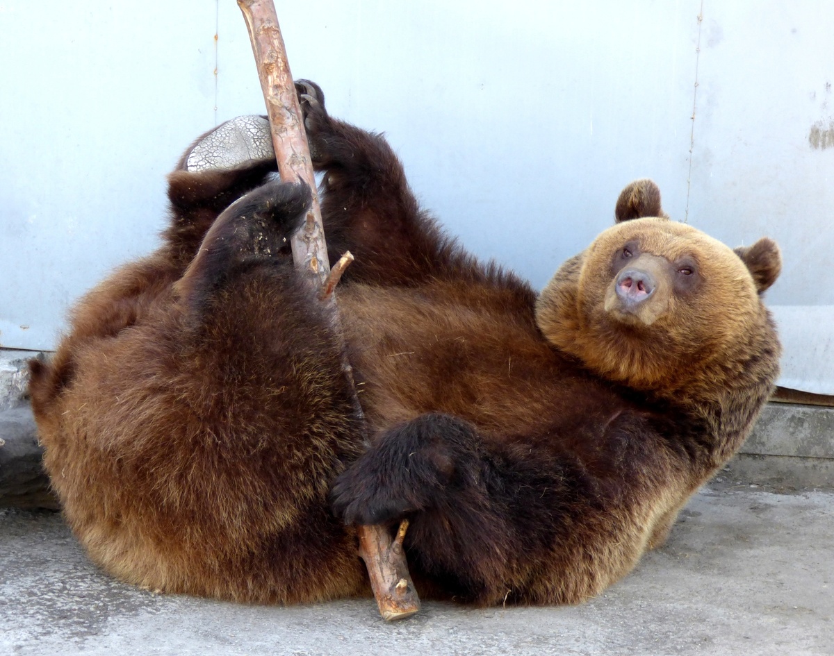 Медведица Бусинка отрабатывает элементы художественной гимнастики в Абаканском зоопарке
