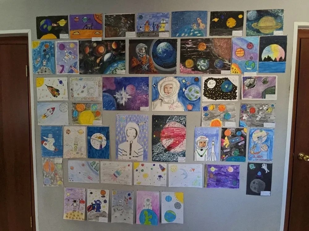 В редакции газеты "Новое время" организована выставка работ участников окружной акции "Краски галактики", приуроченной ко Дню космонавтики