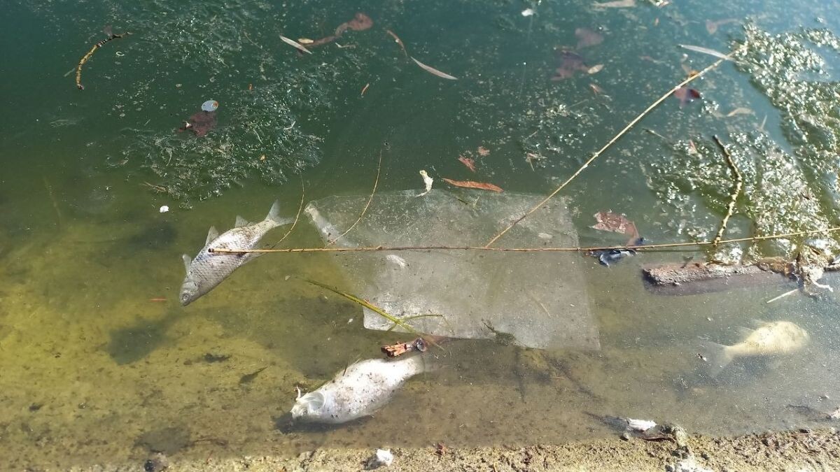 На "Лебедином озере" Воронежа продолжается уборка погибшей рыбы