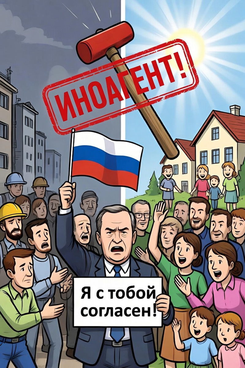 Закон требует в определённых случаях ставить специальные пометки. Это факт. Но давайте честно: когда ты сам видишь, что человек говорит о реальных болях — о высоких налогах, о том, как богатства страны уходят мимо народа, о том, что простому человеку всё тяжелее дышать, — ты не чувствуешь в нём врага. Ты чувствуешь своего.