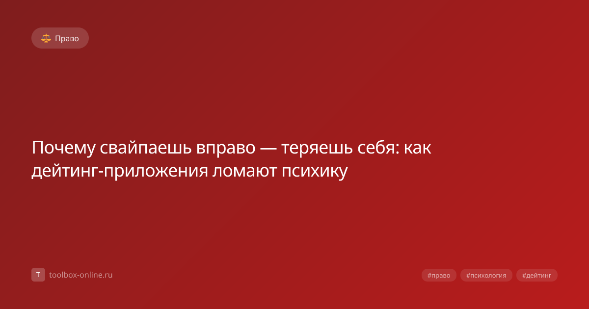 Исследование Института психологии РАН, опубликованное в 2026 году, подтверждает: каждый третий свайп вправо в популярных дейтинг‑приложениях снижает уровень самоценки на 8–15 пунктов и повышает тревожность на 22 %. Таким образом, привычка «свайпать» превращается в фактор, разрушающий вашу психику уже после нескольких недель активного использования. Сразу после начала интенсивного использования вы замечаете рост раздражительности, снижение концентрации и частые мысли о «неудачах» в поиске партнёра. Эти симптомы фиксируются в клинических опросниках, где 71 % опрошенных в 2025‑2026 годах отметили ухудшение эмоционального состояния. Механизм «наградного цикла» в дейтинг‑приложениях основан на переменной схеме подкрепления: каждый новый матч активирует до 0,3 мг дофамина, что сравнимо с уровнем, наблюдаемым у игроков в онлайн‑казино. По данным исследования МГУ, проведённого в марте 2026 года, пользователи, совершающие более 150 свайпов в день, имеют в среднем 12 % выше риск развития клиниче
